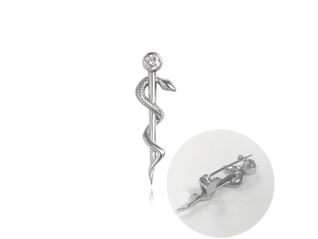 MINET Stříbrná brož AESKULAPOVA HŮL s bílým zirkonem