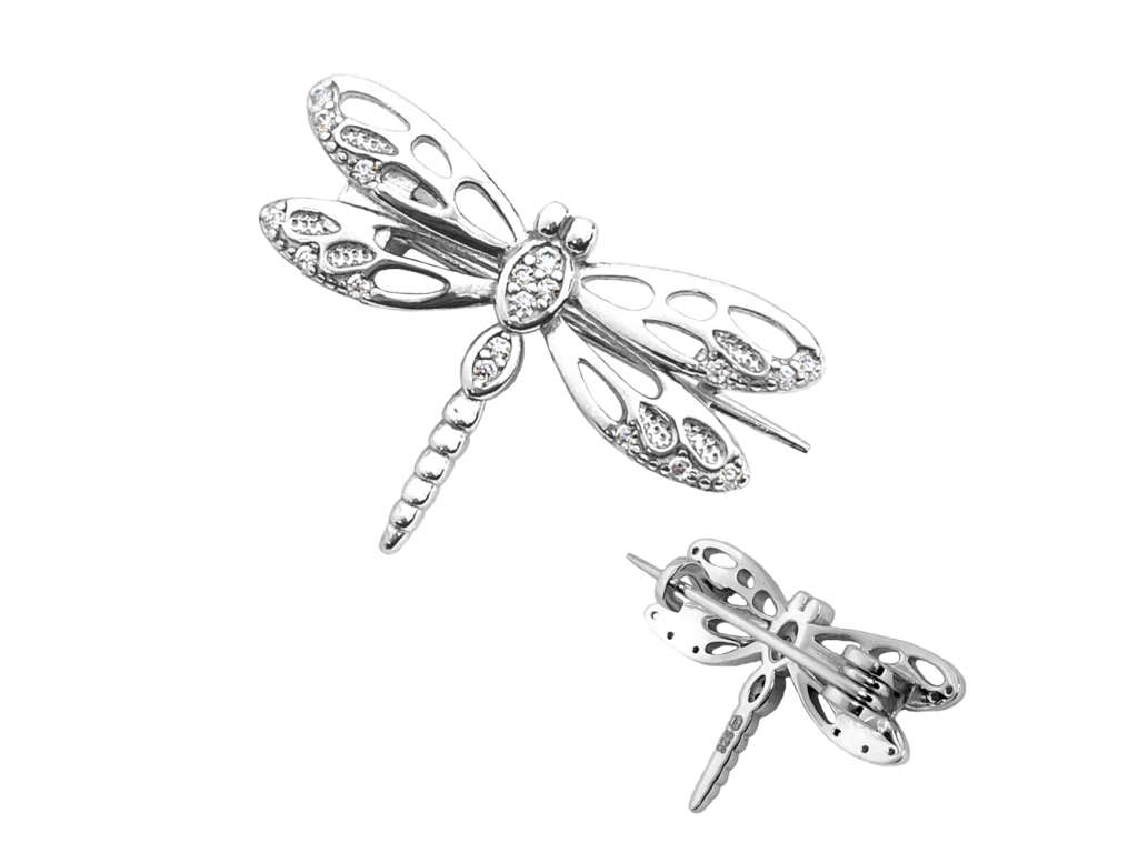 MINET Stříbrná brož VÁŽKA s bílými zirkony