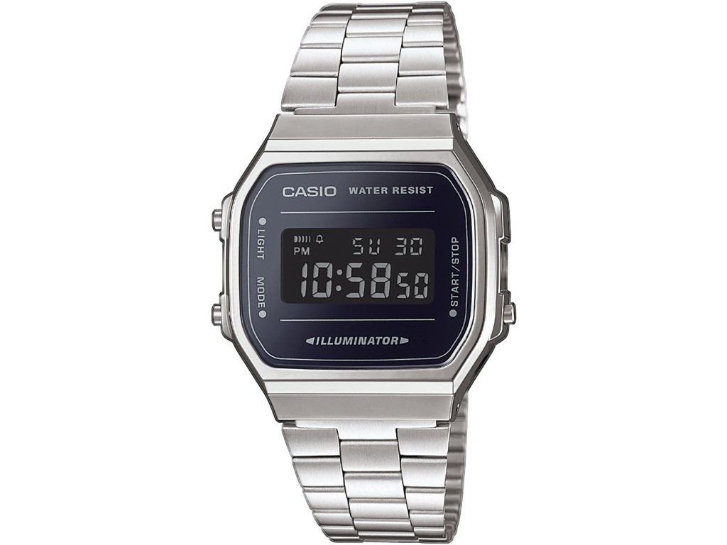 Unisex digitální hodinky CASIO A 168WEM-1 jsou vyrobeny z plastu v kombinaci s kovovým řemínkem. Hodinky nabízí několik praktických i sportovních funkcí: režim 12/24, alarm, stopky a datumovku. Pro lepší čitelnost při horších světelných podmínkách je možné displej rozsvítit LED osvětlením.