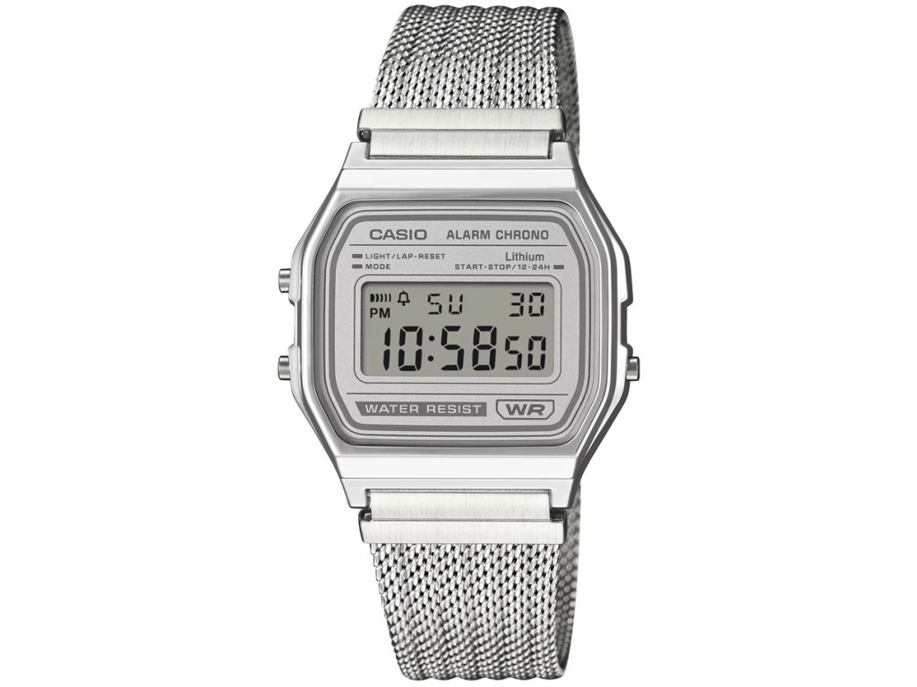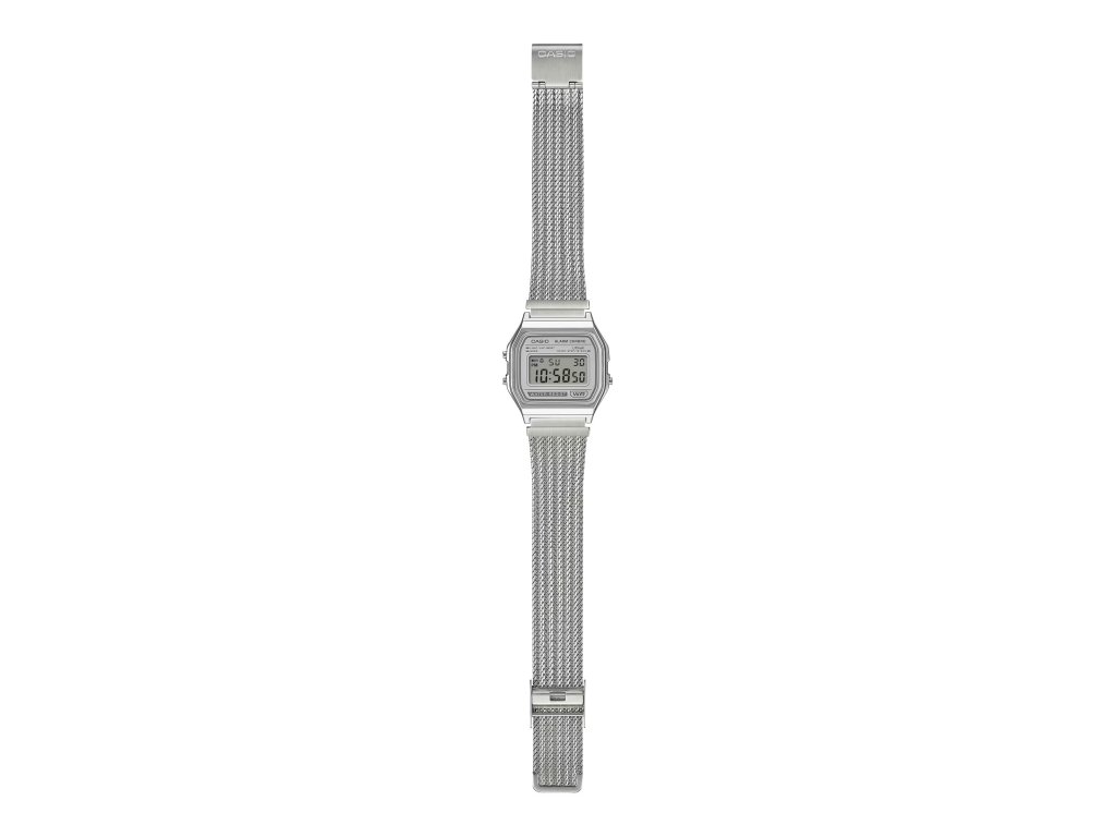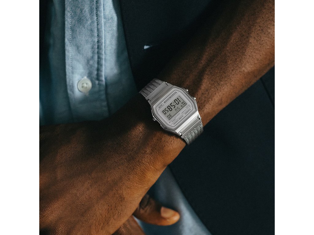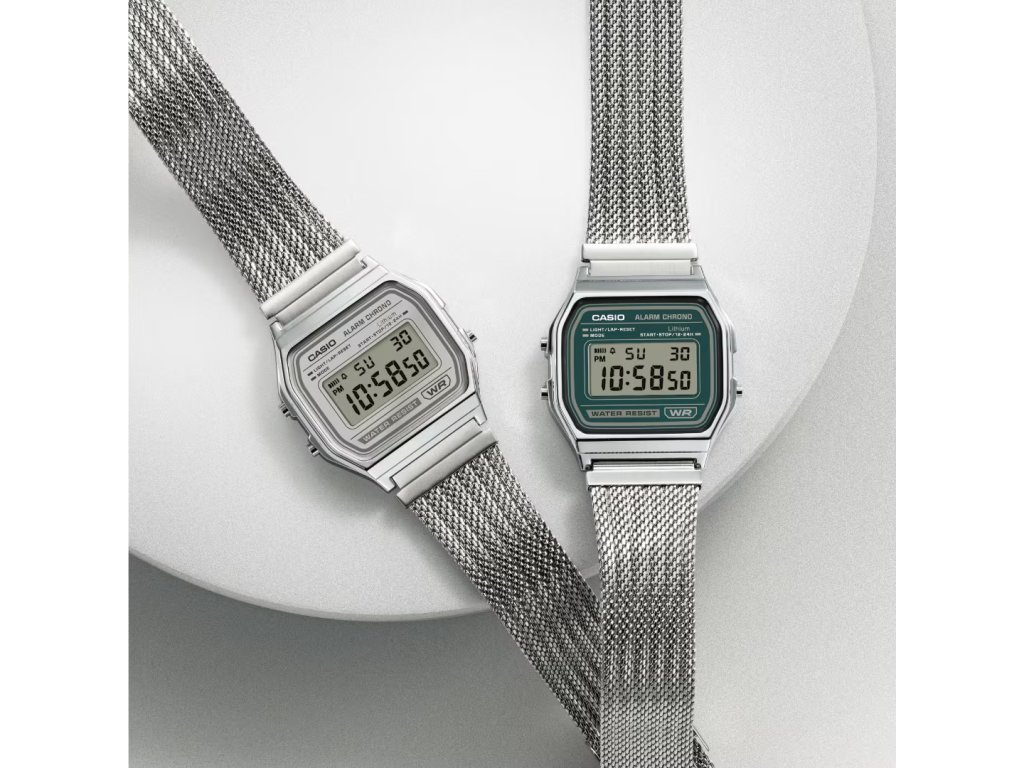 CASIO znovu dokazuje, že retro nikdy nevyjde z módy. Model A158WEM-3EF přináší ikonický digitální design, tentokrát v elegantní kombinaci stříbrného ciferníku a jemného milánského náramku, který posouvá legendární vzhled této řady o úroveň výš. Lehký, pohodlný a vizuálně výrazný – perfektní volba pro každodenní nošení i jako módní doplněk.