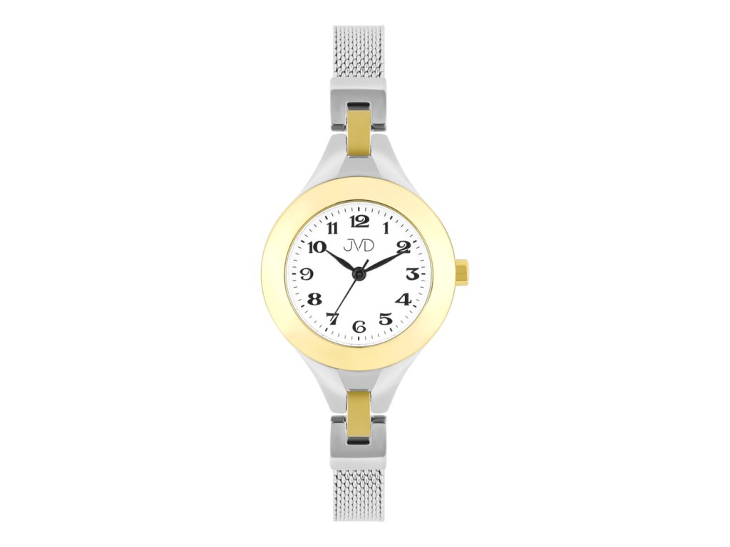 Dámské hodinky JVD JG1040 jsou dokonalým spojením elegance a jednoduchosti. Jejich jemný kulatý tvar, kombinace zlaté a stříbrné barvy a elegantní milánský náramek z nerezové oceli vytvářejí nadčasový doplněk, který zaujme v práci, při společenských událostech i během běžného dne.