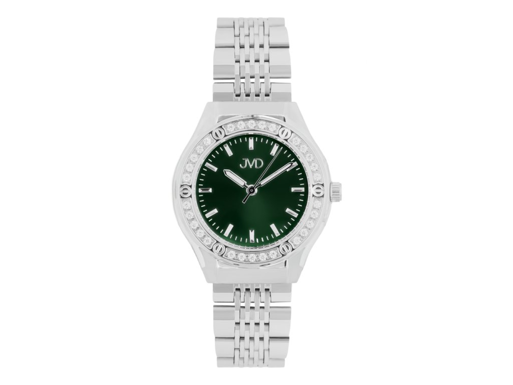 Dámské hodinky JVD JZ214.3 přinášejí do světa elegance osvěžující prvek v podobě hlubokého zeleného ciferníku, který okamžitě zaujme a dodá vašemu stylu výjimečnost. Jemné stříbrné detaily a precizně broušené kamínky kolem pouzdra podtrhují luxusní charakter těchto hodinek.