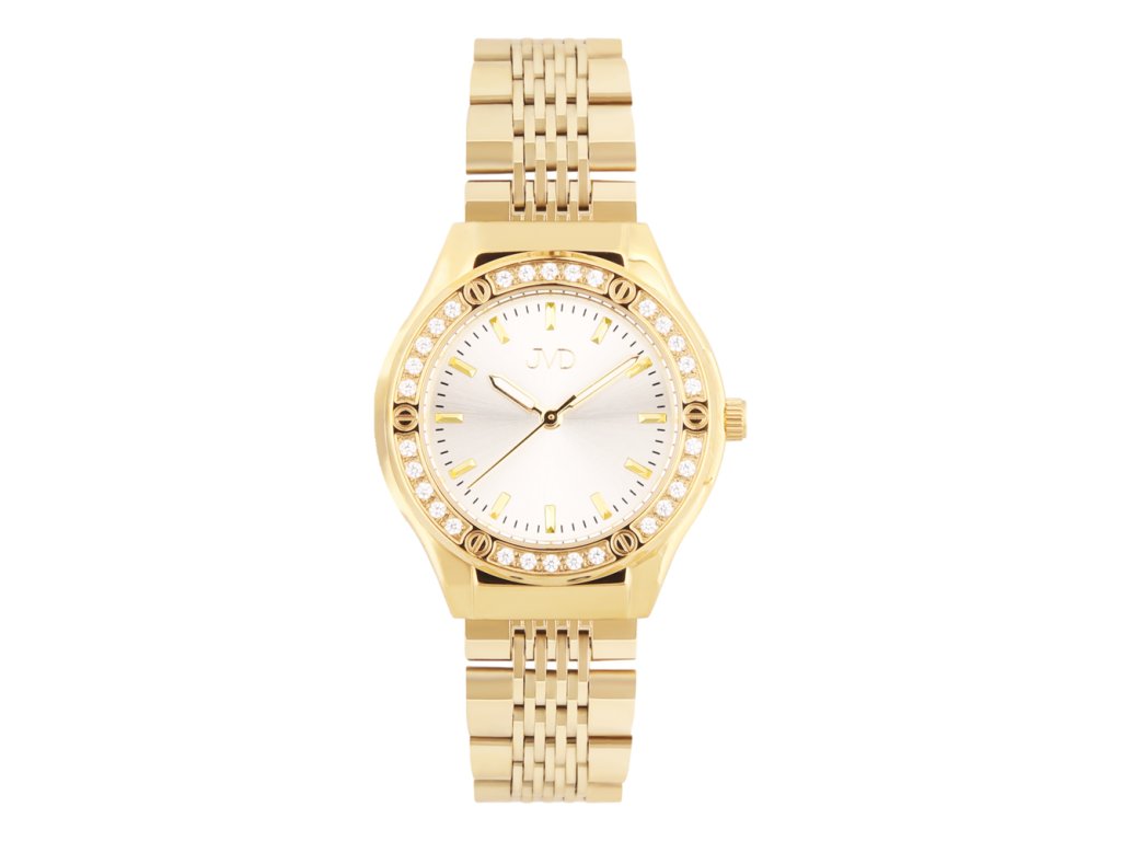 Dámské hodinky JVD JZ214.4 jsou symbolem ženskosti, stylu a jemného luxusu. Zaujmou na první pohled svým zlatým designem a třpytivými kamínky osazenými po obvodu pouzdra, které se krásně lesknou při každém pohybu. Kombinace světlého ciferníku a zlatých detailů působí elegantně, přitom decentně – ideální doplněk pro každodenní nošení i slavnostní příležitosti.