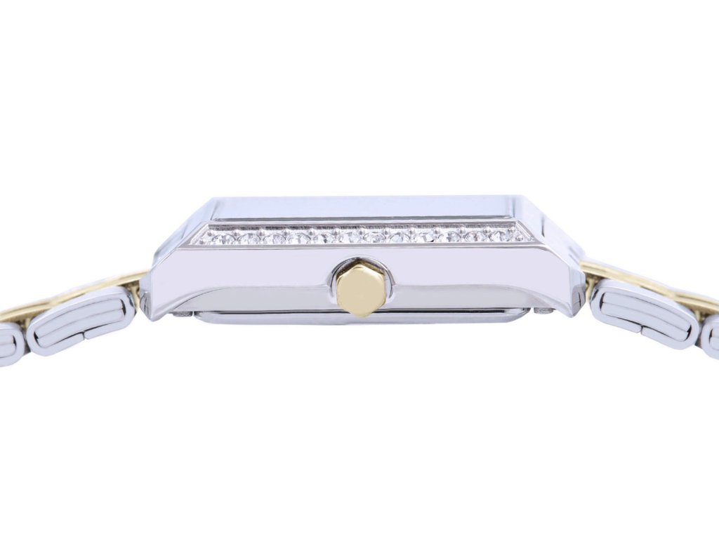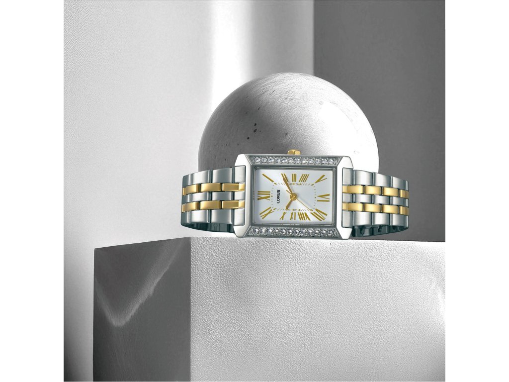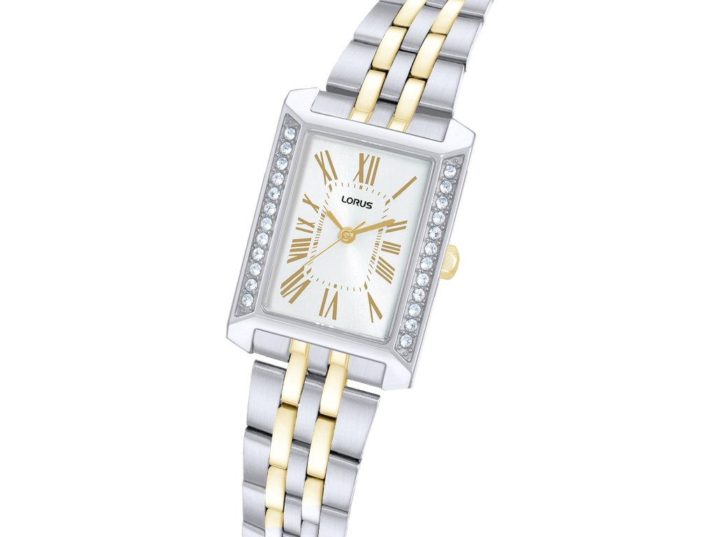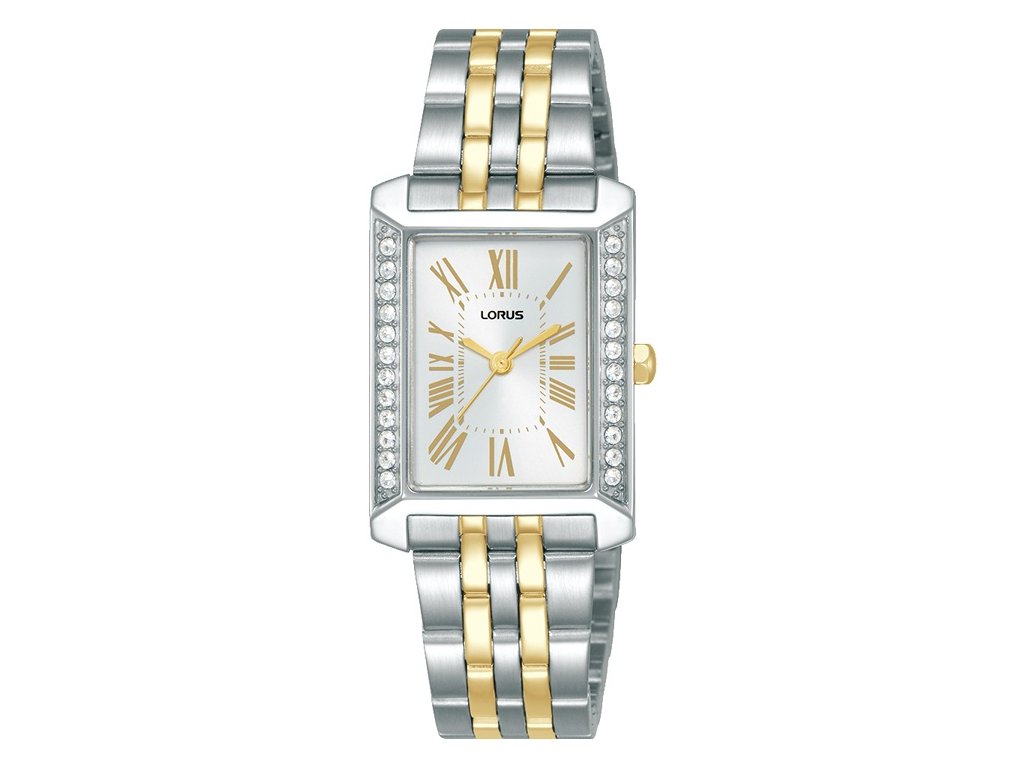 Lorus RG235YX9 jsou dámské hodinky, které spojují klasickou eleganci s jemným šperkovým vzhledem. Obdélníkové pouzdro zdobené třpytivými kamínky působí velmi ženským dojmem a ve spojení s dvoubarevným náramkem vytváří nadčasový doplněk pro každodenní nošení i slavnostnější příležitosti.