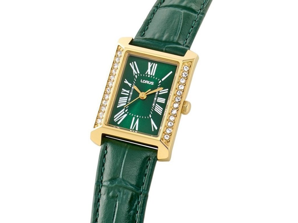 Dámské hodinky LORUS RG242YX9 představují stylový doplněk, který zaujme na první pohled. Obdélníkové pouzdro ve zlatém tónu doplňuje sytě zelený ciferník s jemným přechodem odstínů, jenž hodinkám dodává hloubku a luxusní vzhled. Bílé římské číslice vytvářejí elegantní kontrast a zajišťují velmi dobrou čitelnost.