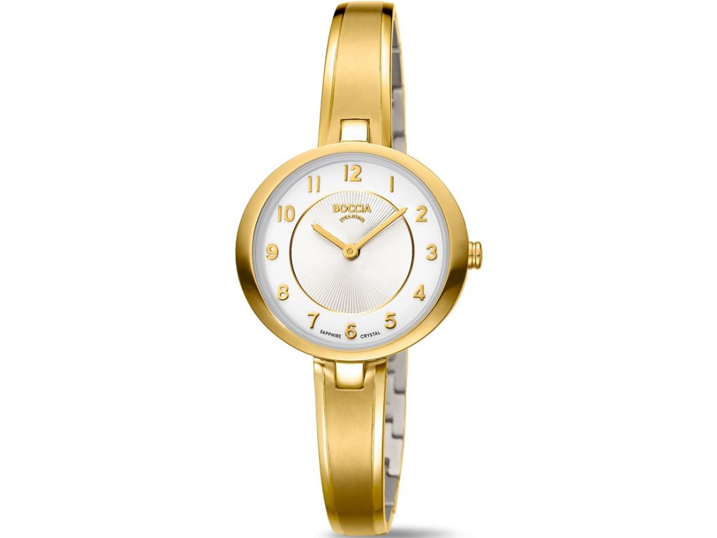 Boccia Titanium 3377-02 jsou elegantní dámské hodinky v celopozlaceném provedení, které působí jako jemný šperk a zároveň nabízejí maximální komfort při každodenním nošení. Tento model je ideální volbou pro ženy, které milují klasickou zlatou barvu v moderním, neokázalém pojetí. Značka Boccia Titanium zde opět potvrzuje, že luxus může být lehký, pohodlný a praktický.