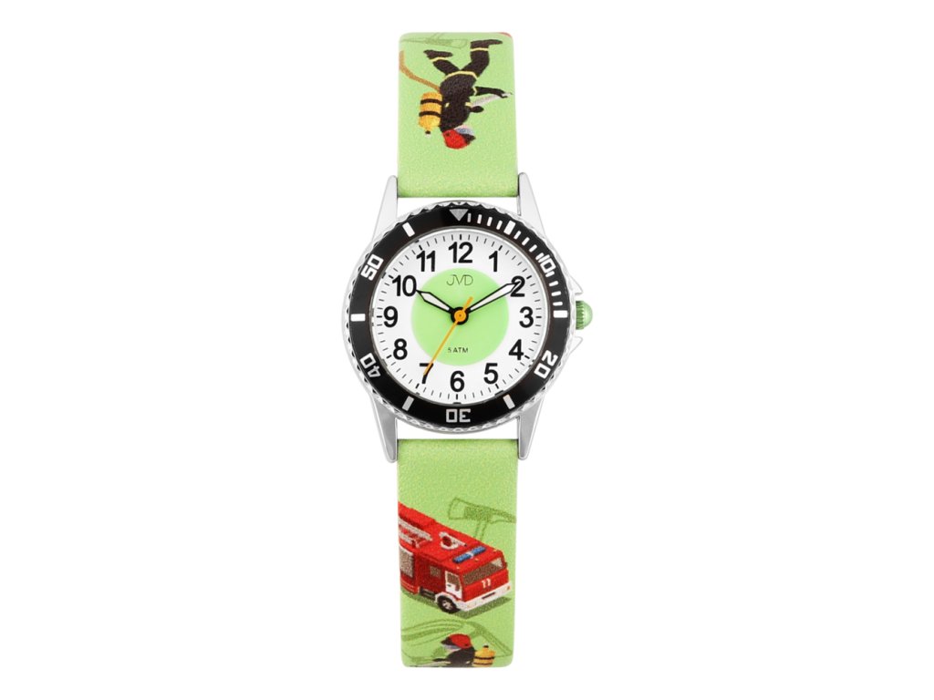 Hodinky JVD J7231 jsou určeny pro všechny malé kluky, kteří obdivují hasiče a jejich odvahu. Na první pohled zaujmou svým sportovním designem a řemínkem s motivem hasičů, zásahového vozu a vrtulníku, který v sobě nese energii i hrdinství. Výrazná luneta na pouzdře dodává hodinkám skutečně chlapecký vzhled, díky kterému se jejich malý nositel bude cítit jako opravdový záchranář.