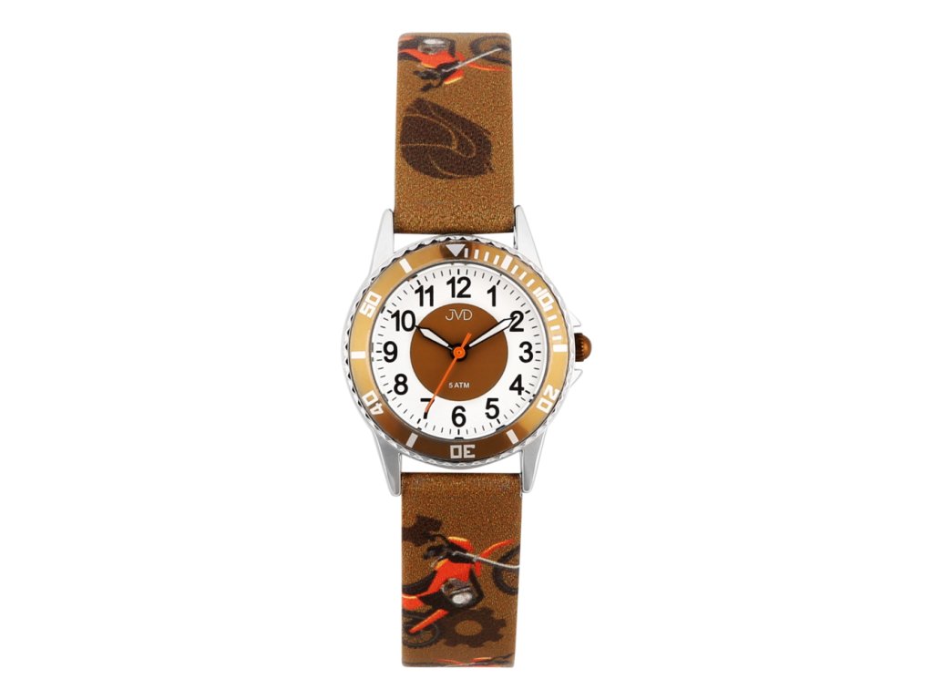 Hodinky JVD J7233 potěší všechny kluky, kteří milují rychlost, motorky a dobrodružství. Jejich sportovní vzhled doplňuje řemínek s motivem motorek a ozubených kol, který dokonale vystihuje svět motorismu. Výrazná luneta na pouzdře dodává hodinkám chlapácký, závodní styl, díky kterému se každý malý závodník bude cítit jako šampion.