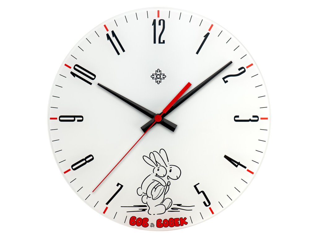 Nástěnné hodiny s postavičkami oblíbených večerníčkových hrdinů, králíků Boba a Bobka. Veselé motivy ve dvou provedeních probudí úsměv na tváři a slyšíte? Jakoby zdálky? „Vstávat a cvičit!“