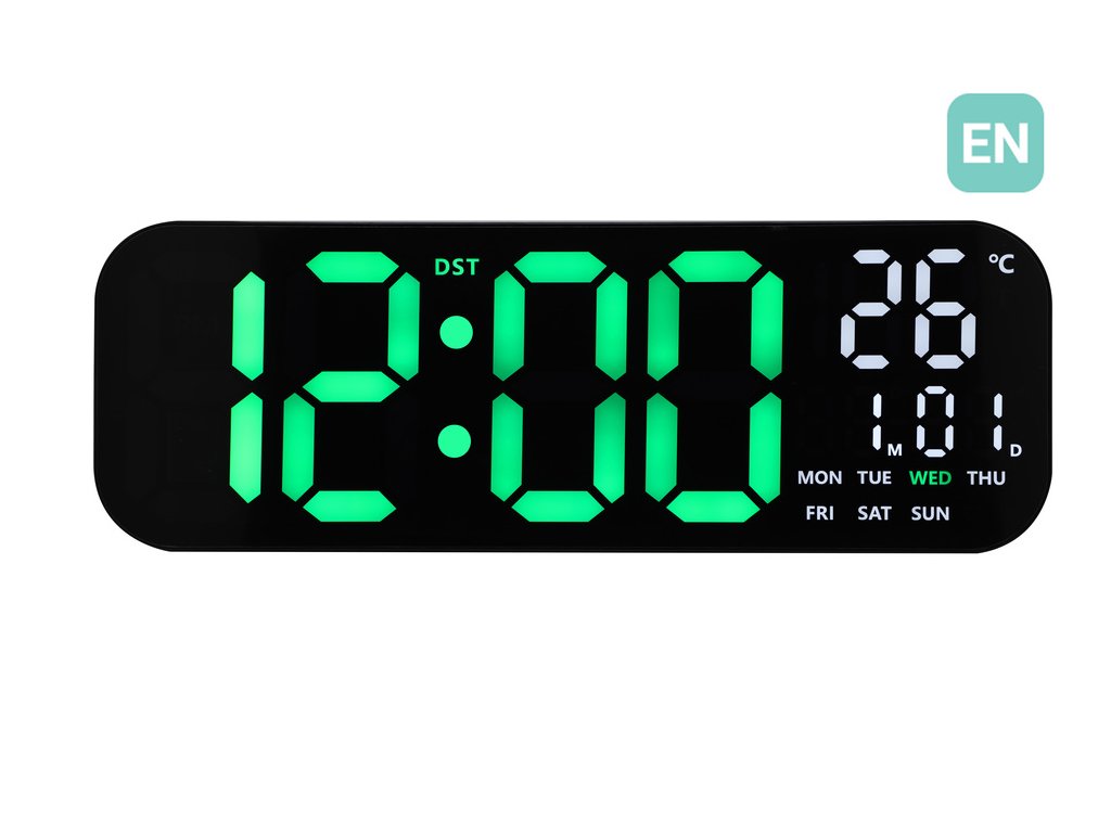 Velký LED displej s jasně svítícími číslicemi vám okamžitě ukáže vše, co potřebujete vědět – čas, datum, den v týdnu v angličtině i aktuální teplotu v místnosti. Díky výborné čitelnosti se neztratí ani ve větších prostorech.