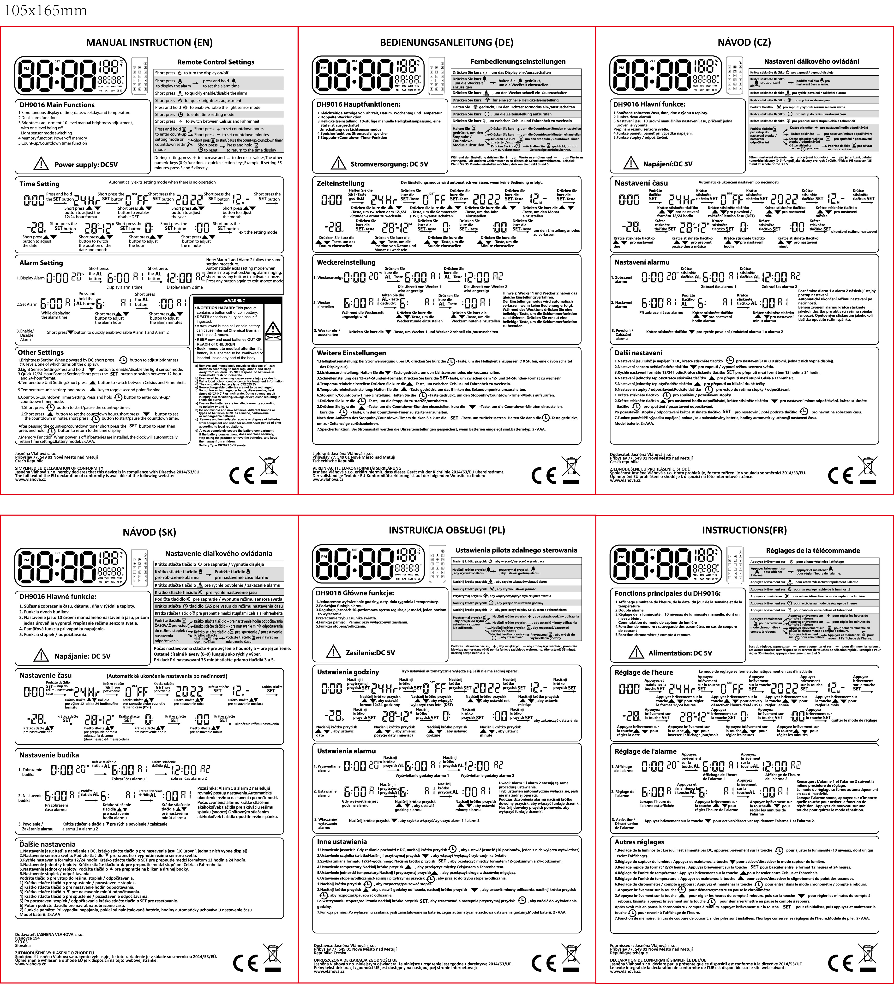 Pokud hledáte hodiny, které spojují elegantní vzhled, vysokou praktičnost a jednoduché ovládání, pak jsou digitální hodiny JVD DH9016 tou pravou volbou. Díky propracovanému displeji a bohaté výbavě se stanou nejen nepostradatelným pomocníkem, ale i stylovým doplňkem vašeho domova či kanceláře.