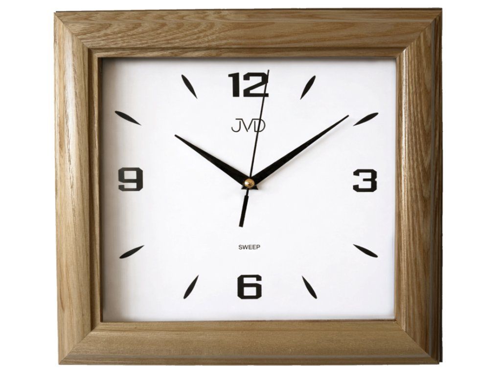 Nástěnné hodiny JVD NS20184.1 zaujmou čistým a nadčasovým designem, který spojuje přírodní dřevo s moderně pojatým ciferníkem. Obdélníkové pouzdro dodává hodinám netradiční vzhled a zároveň z nich dělá výrazný interiérový prvek.