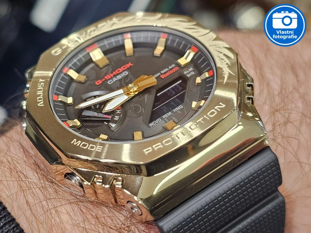 CASIO G-Shock GBM-2100CX-9AER je výjimečný model, který vznikl jako oslava roku koně. Design hodinek vychází z legendy o mýtickém okřídleném koni „thousand-li“, symbolu síly, vytrvalosti a štěstí. Tento motiv se promítá do každého detailu – od rytiny na ciferníku až po luxusní zlaté provedení lunety.
