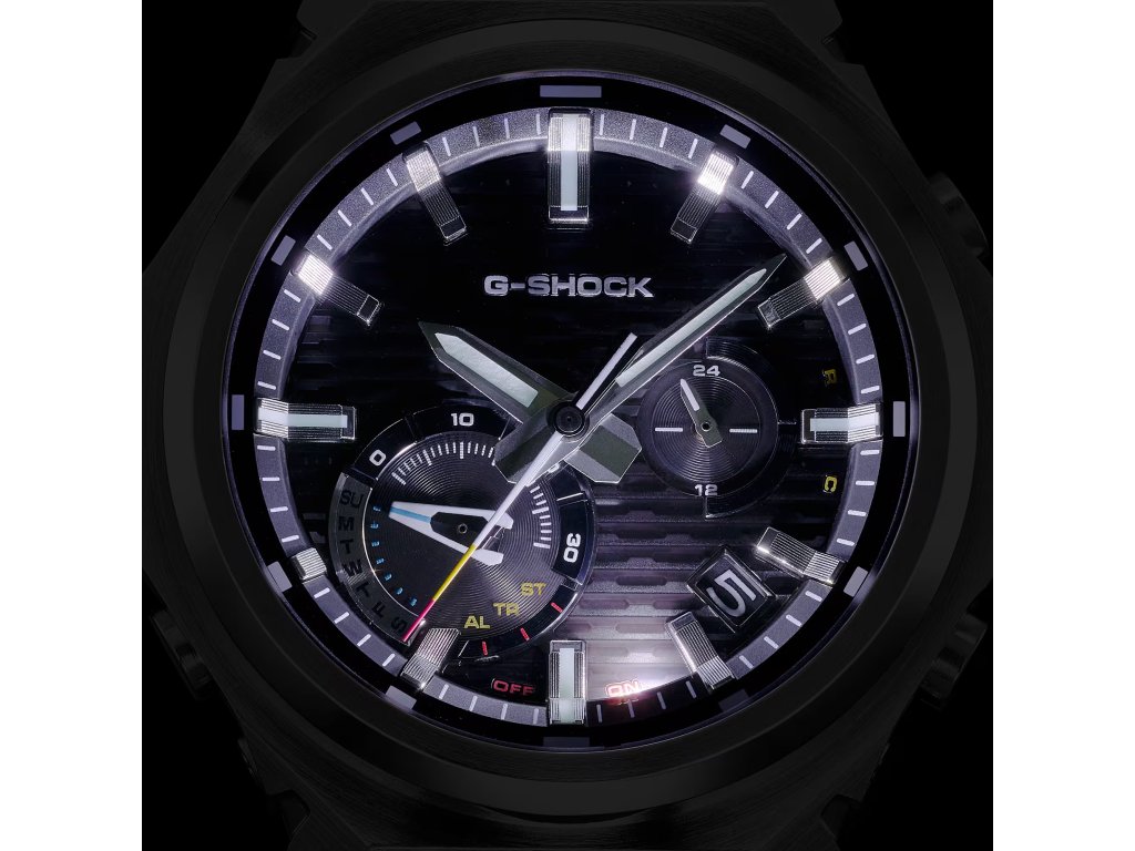 Subciferníky jsou funkčně přehledné a zároveň harmonicky zapuštěné do celkového designu. Barevné akcenty v duchu původního G-SHOCK odkazu (červená, modrá, žlutá) dodávají hodinkám jemnou sportovní energii bez narušení elegance.