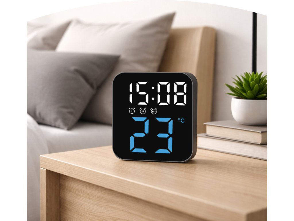 Na displeji permanentně svítí nejen čas, ale také ukazatel vnitřní teploty.