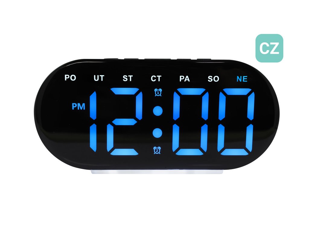 Budík disponuje svítícím LED displejem, na kterém pohodlně zjistíte čas, den v týdnu v češtině a teplotu. Díky výrazným číslicím je čas snadno čitelný i z větší vzdálenosti nebo při slabším osvětlení.