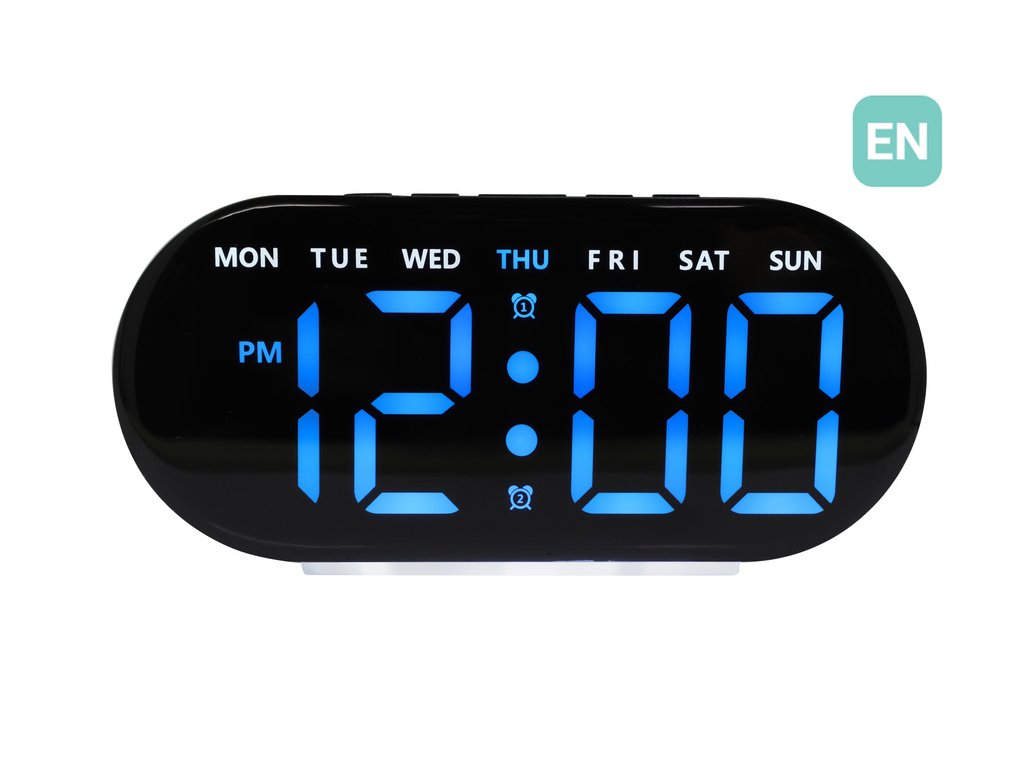 Budík disponuje svítícím LED displejem, na kterém pohodlně zjistíte čas, den v týdnu v češtině a teplotu. Díky výrazným číslicím je čas snadno čitelný i z větší vzdálenosti nebo při slabším osvětlení.