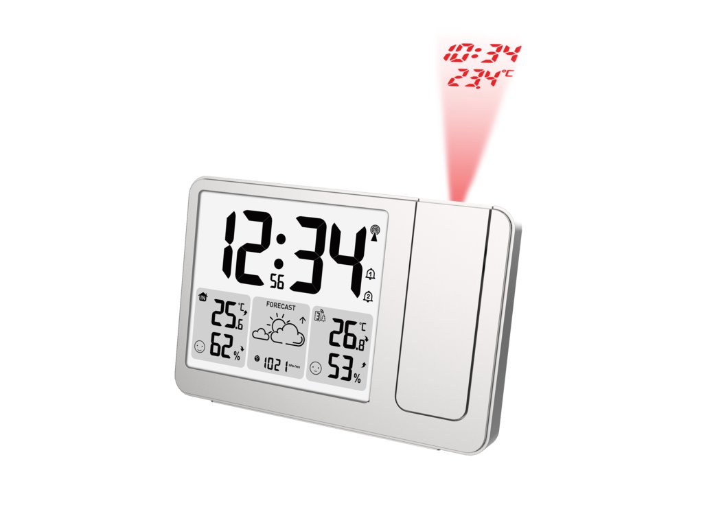 Součástí balení je bezdrátové venkovní čidlo, které přenáší data přímo na hlavní přístroj. Na displeji tak přehledně uvidíte nejen čas, ale i aktuální podmínky doma i venku. Jednoduchá předpověď počasí pomocí symbolů vám navíc napoví, co od dne čekat.