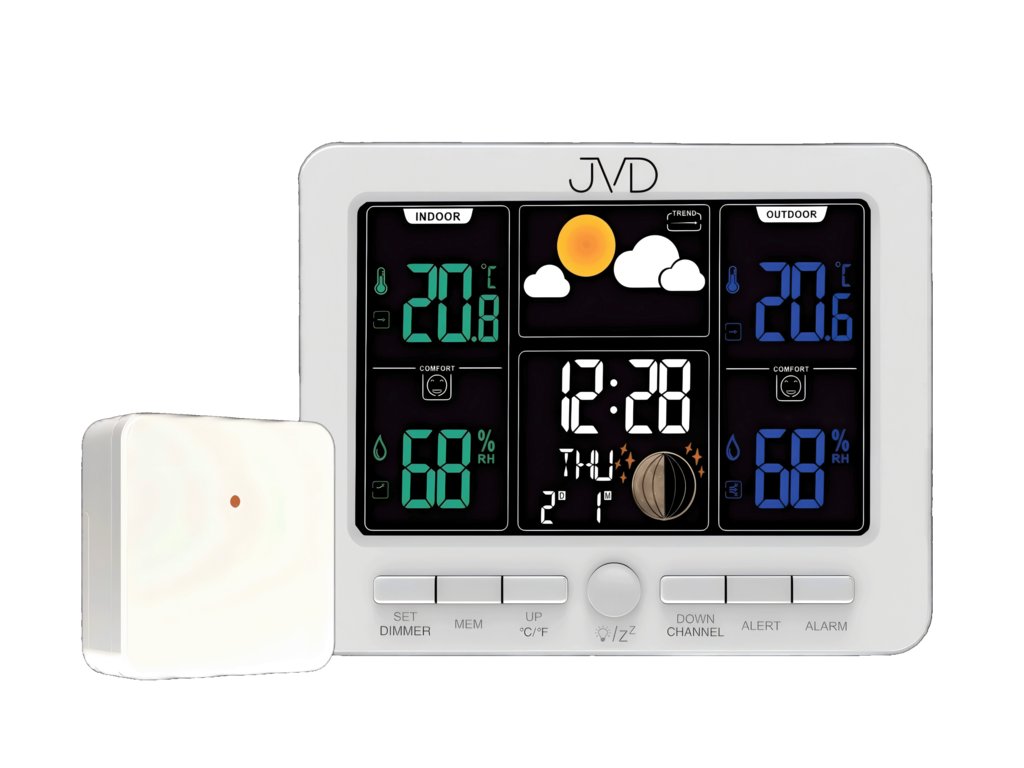 Seznamte se s meteorologickou stanicí nové generace s úžasným barevným displejem, díky kterému budete mít všechny potřebné informace pěkně přehledně a pohromadě. Stanice nabízí rádiem řízený čas, vnitřní i venkovní teplotu, ukazatel vlhkosti a dokonce i fáze měsíce. Nesmí chybět budík s postupným zesilováním buzení.
