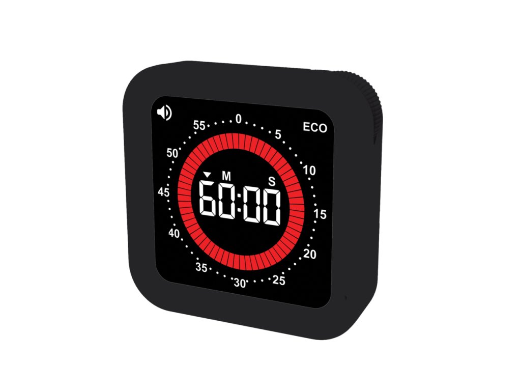 Jednoduchá digitální minutka JVD s velkým a přehledným displejem a magnety na zadní straně přístroje.