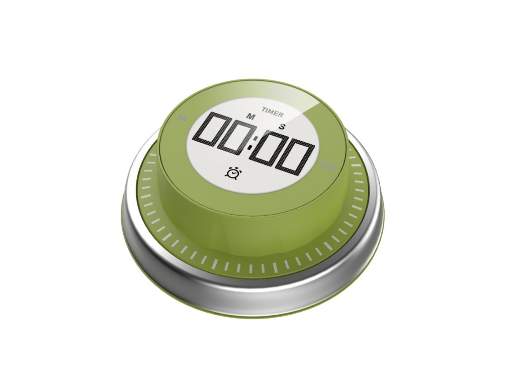 Jednoduchá digitální minutka JVD s velkým a přehledným displejem a magnety na zadní straně přístroje.