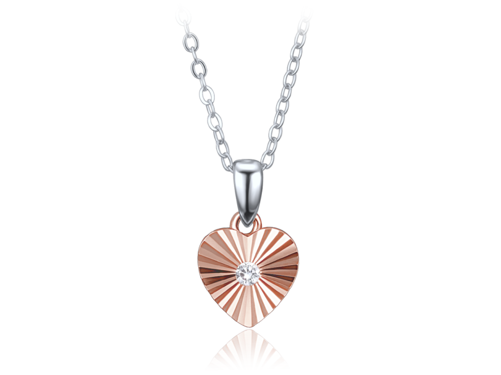 MINET Decentní rosegold stříbrný náhrdelník srdce se zirkonem
