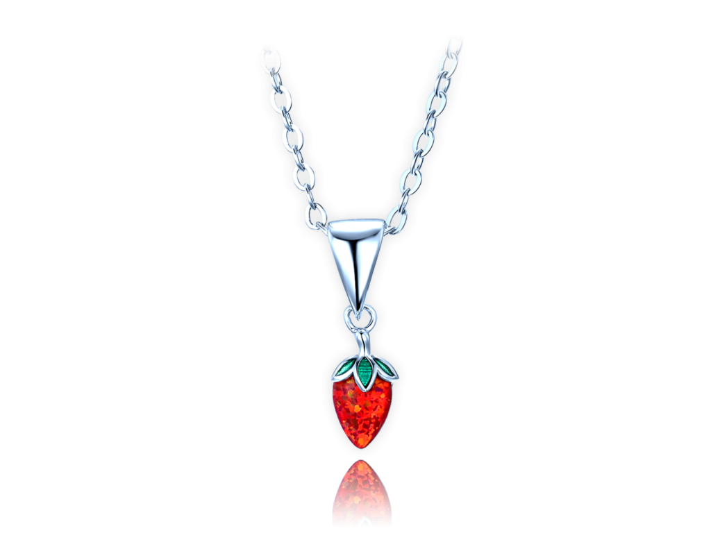 MINET Dětský stříbrný náhrdelník jahůdka s červeným opálem