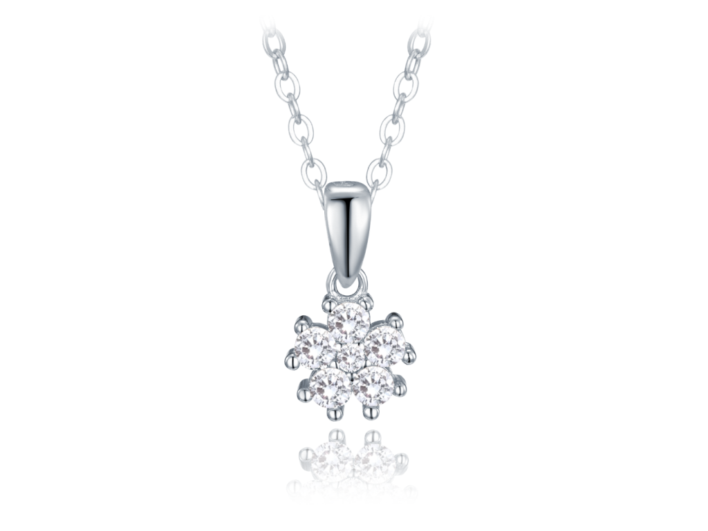 MINET Dětský stříbrný náhrdelník kytička s bílými zirkony