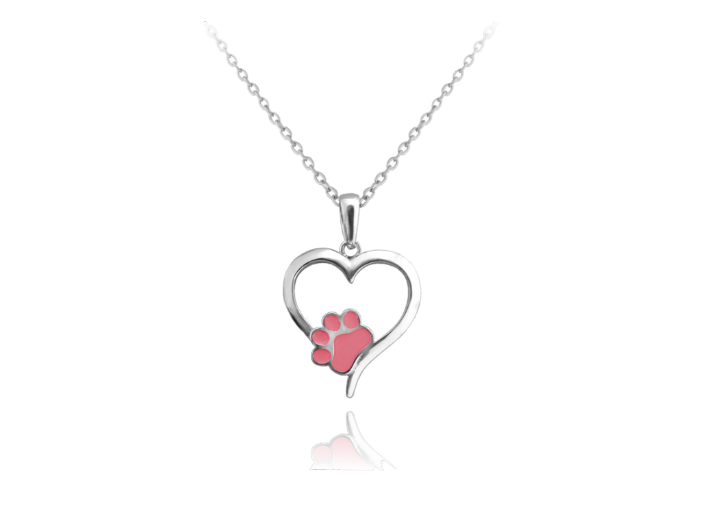 MINET Dětský stříbrný náhrdelník SRDCE s růžovou tlapkou