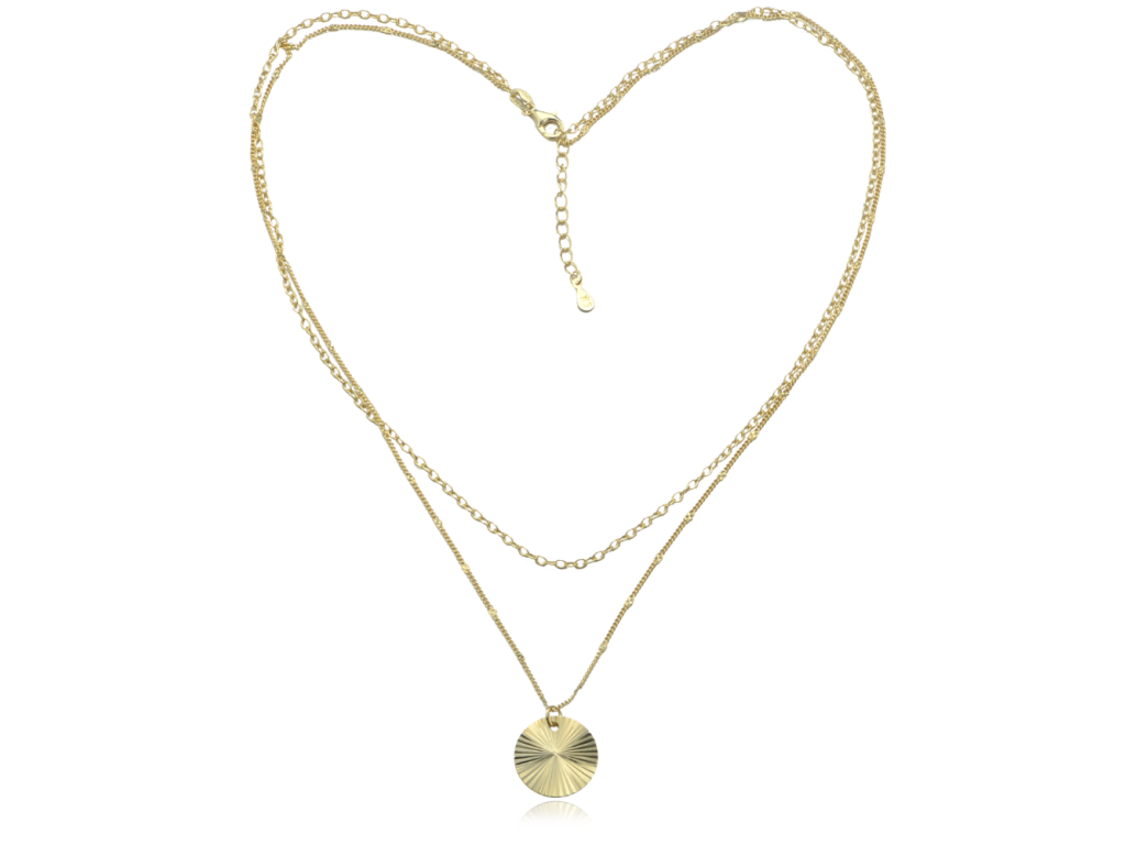 MINET Dvojitý pozlacený stříbrný náhrdelník s broušeným přívěskem