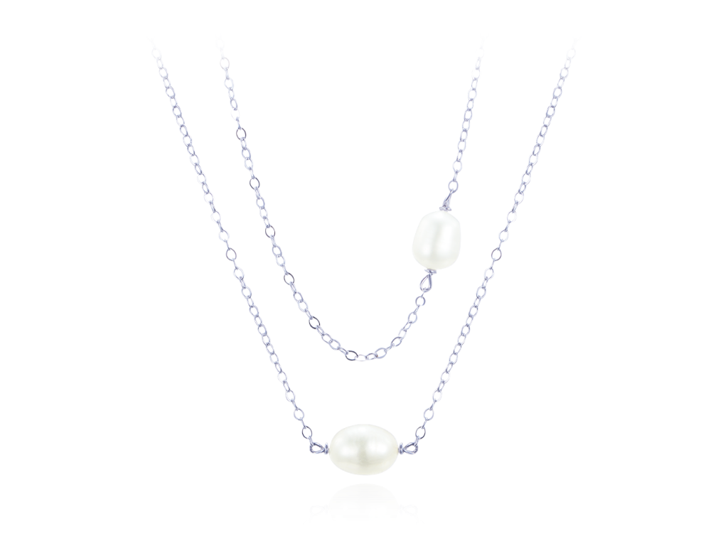 MINET Dvojitý stříbrný náhrdelník s přírodní perlou