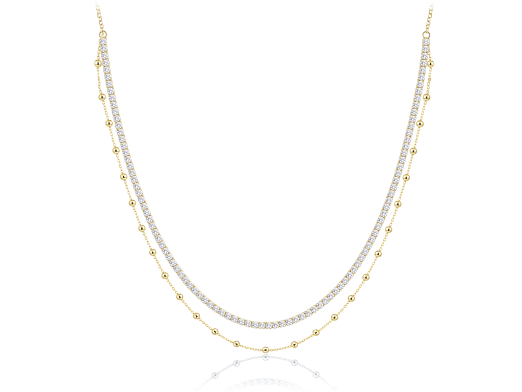 MINET Elegantní dvojitý pozlacený stříbrný náhrdelník s bílým zirkonem