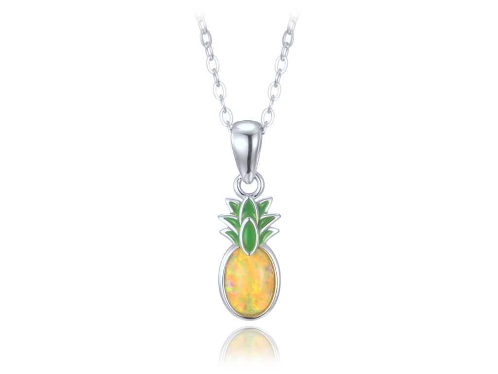 MINET Letní stříbrný náhrdelník ananas se žlutým opálem