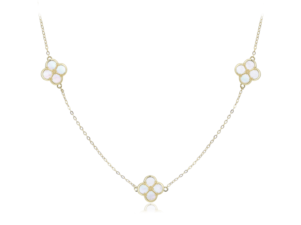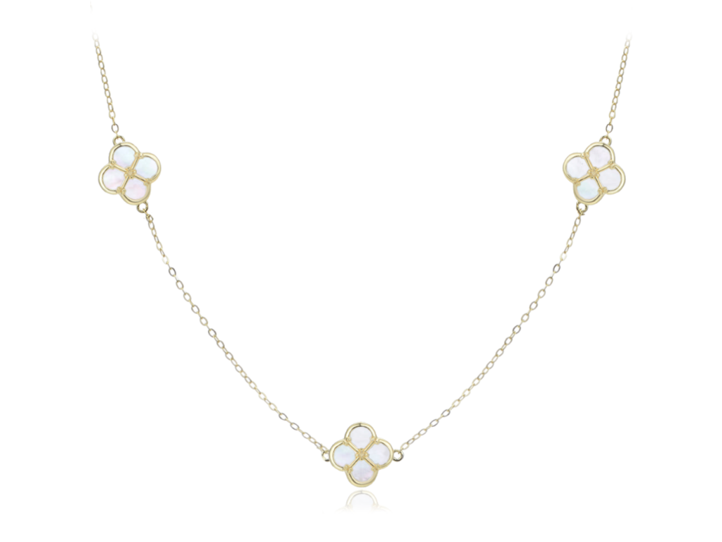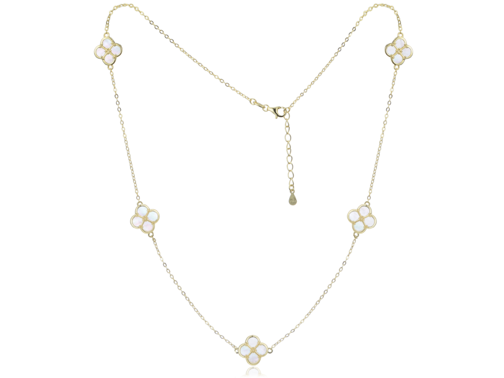 MINET Pozlacený stříbrný náhrdelník čtyřlístky s bílou perletí