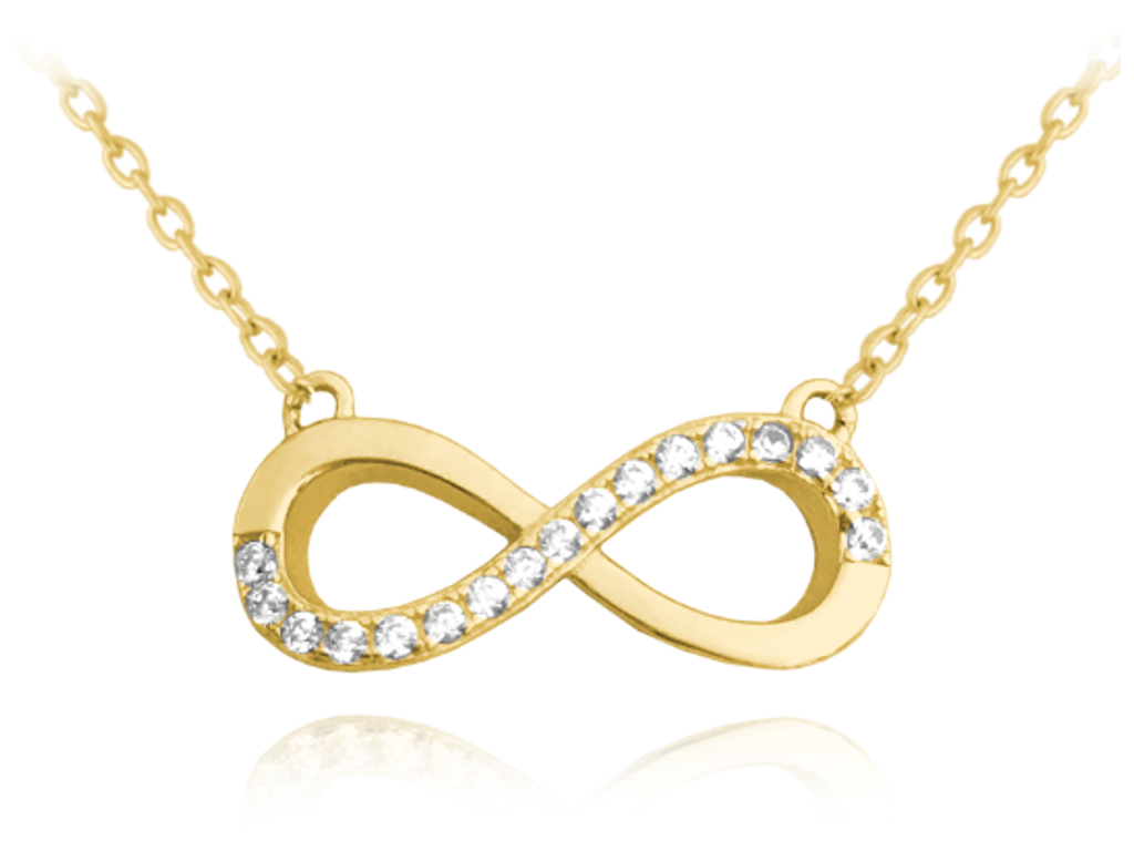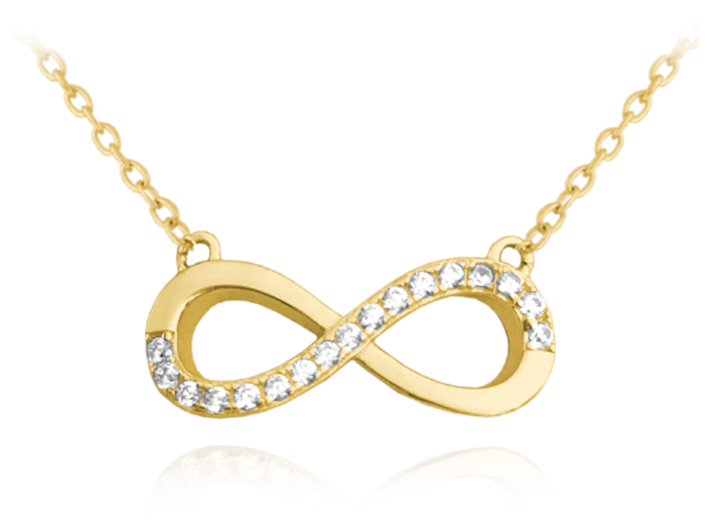 MINET Pozlacený stříbrný náhrdelník NEKONEČNO s bílými zirkony
