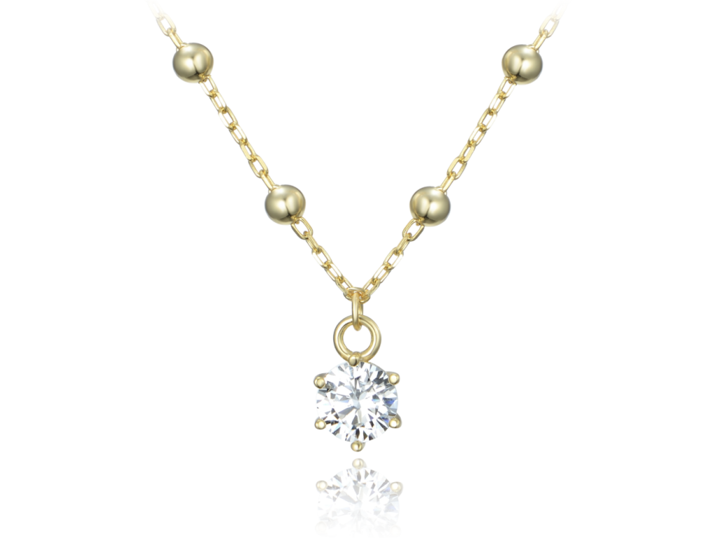 MINET Pozlacený stříbrný náhrdelník s kuličkami a bílým zirkonem