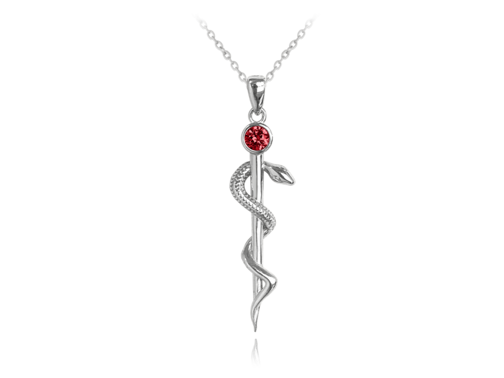 MINET Stříbrný náhrdelník AESKULAPOVA HŮL s červeným zirkonem