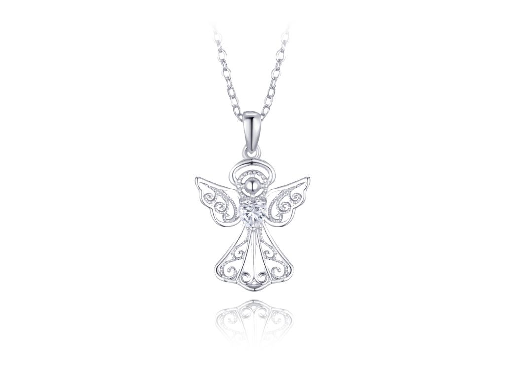 MINET Stříbrný náhrdelník anděl s bílým zirkonem