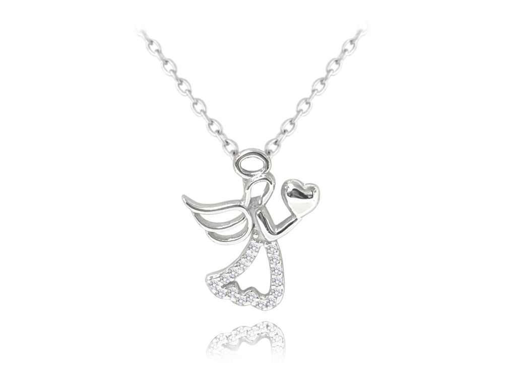 MINET Stříbrný náhrdelník ANDĚL se srdíčkem