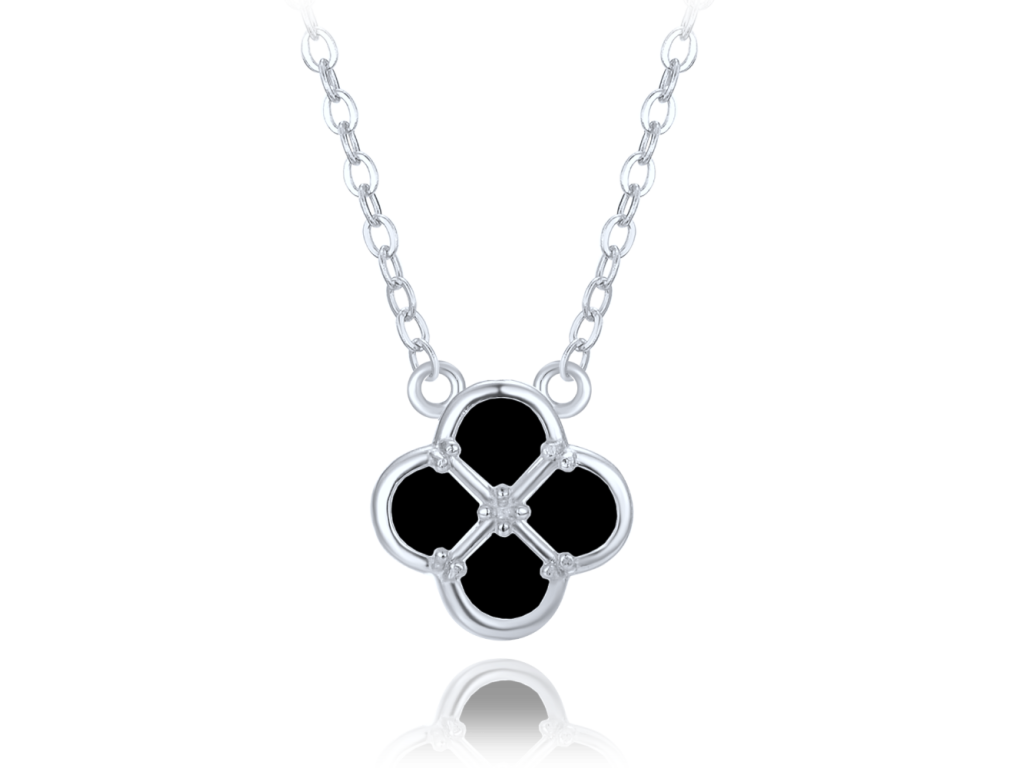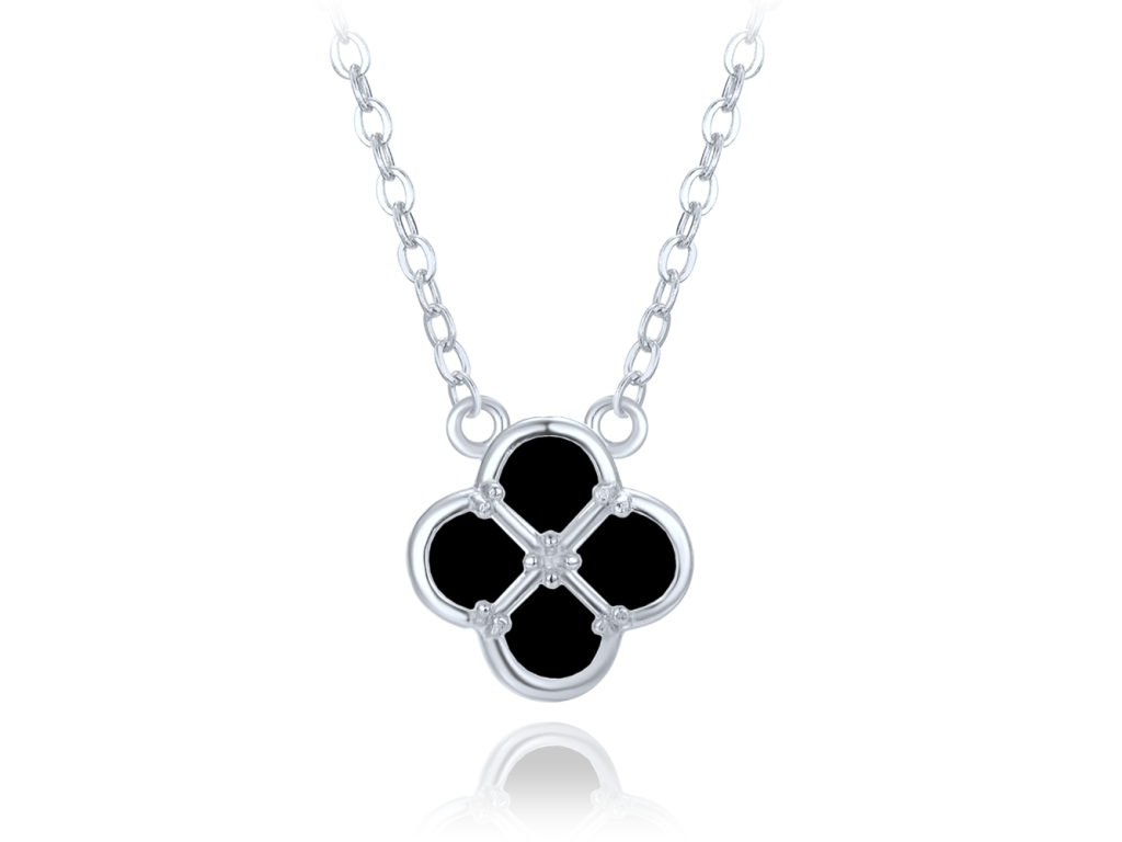 MINET Stříbrný náhrdelník čtyřlístek s černou perletí