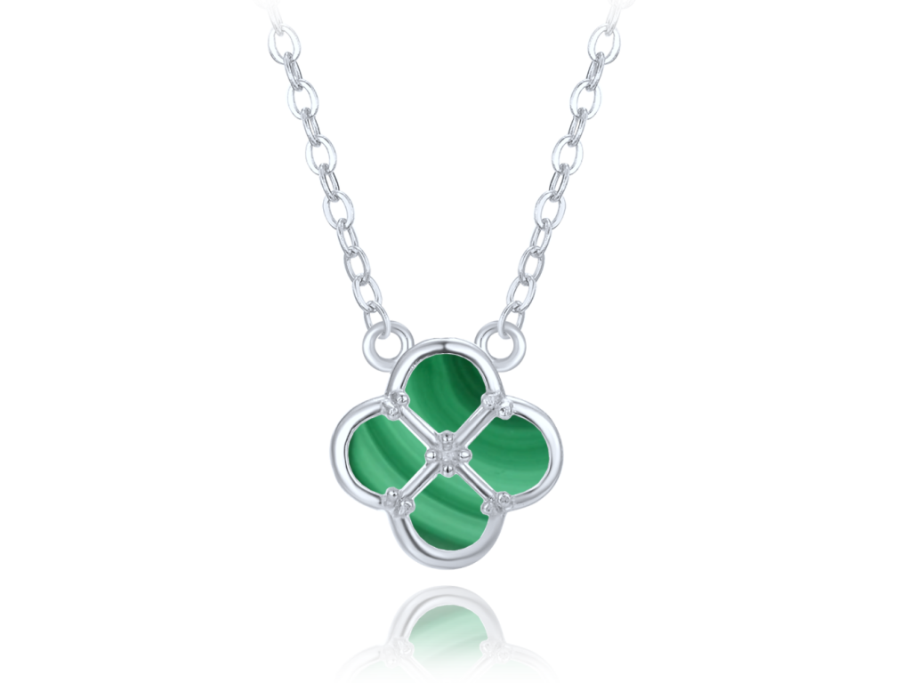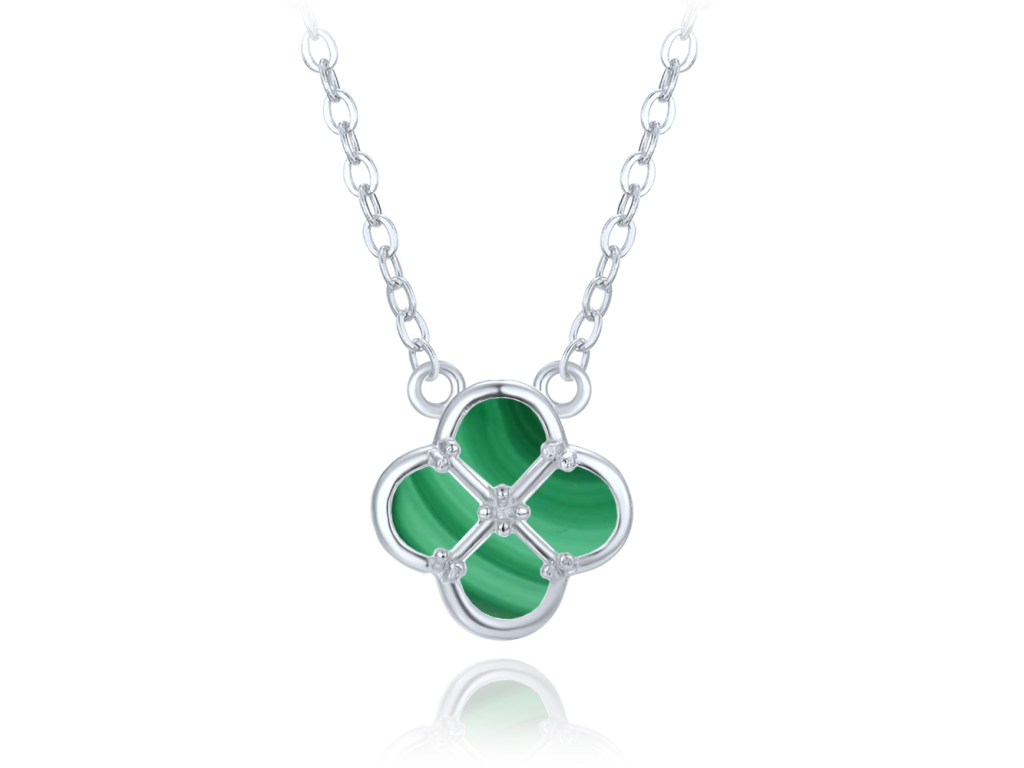 MINET Stříbrný náhrdelník čtyřlístek s malachitem