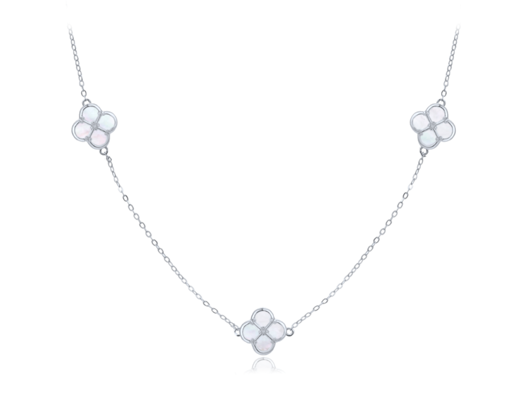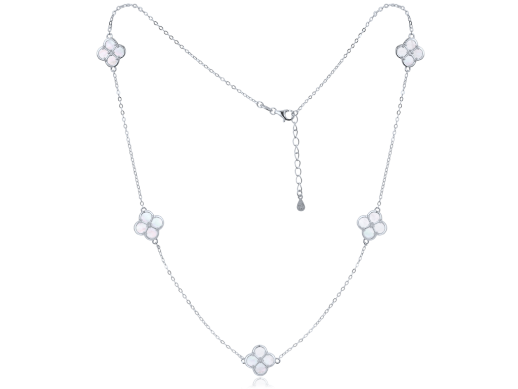 MINET Stříbrný náhrdelník čtyřlístky s bílou perletí