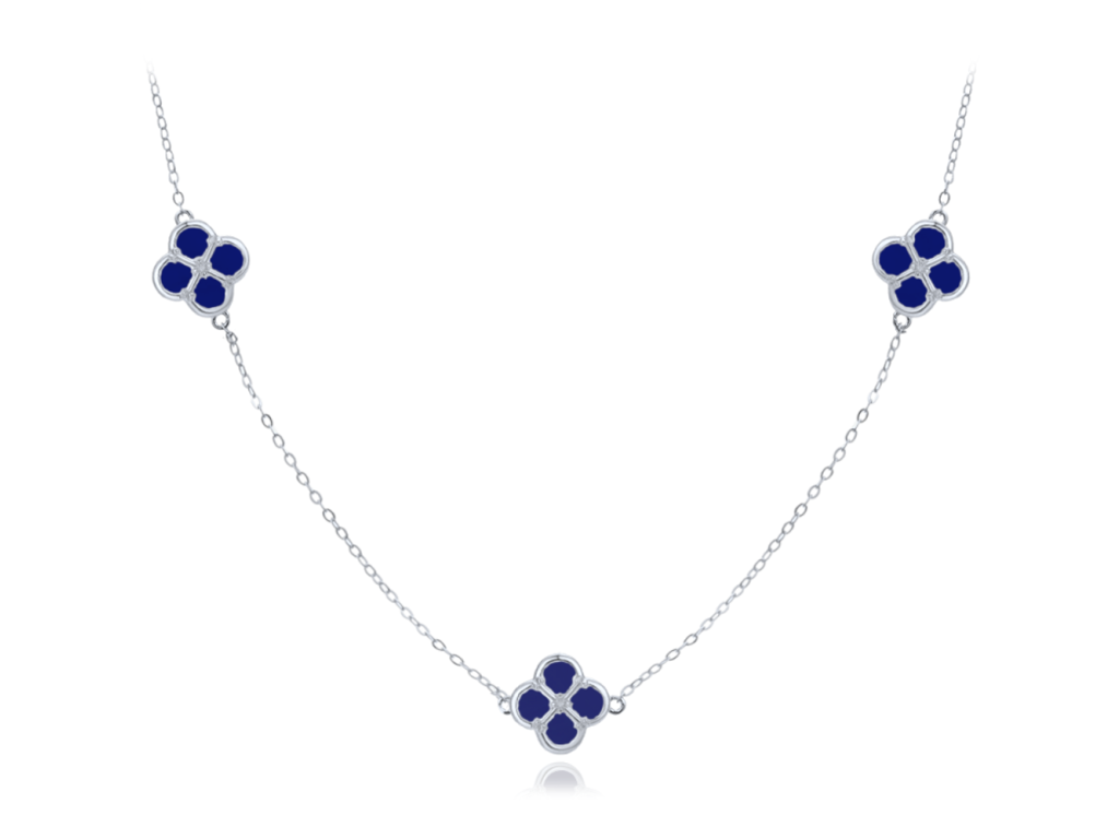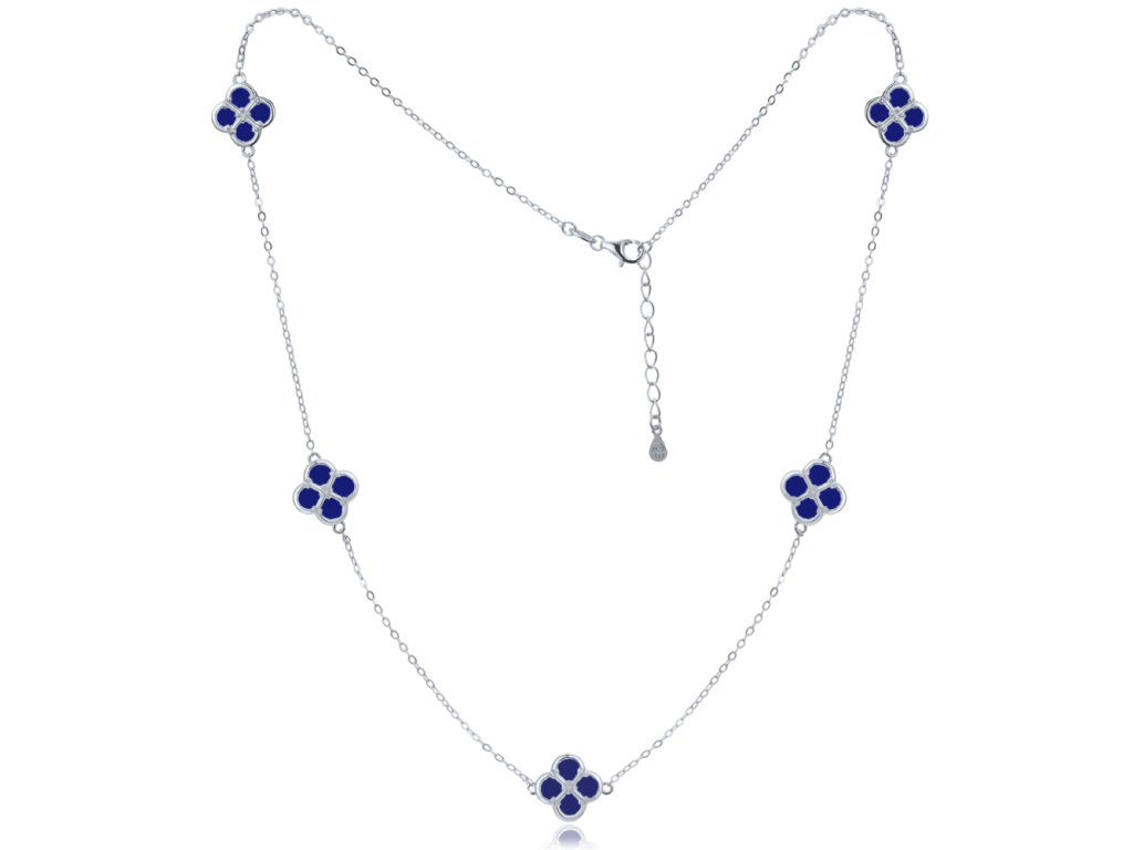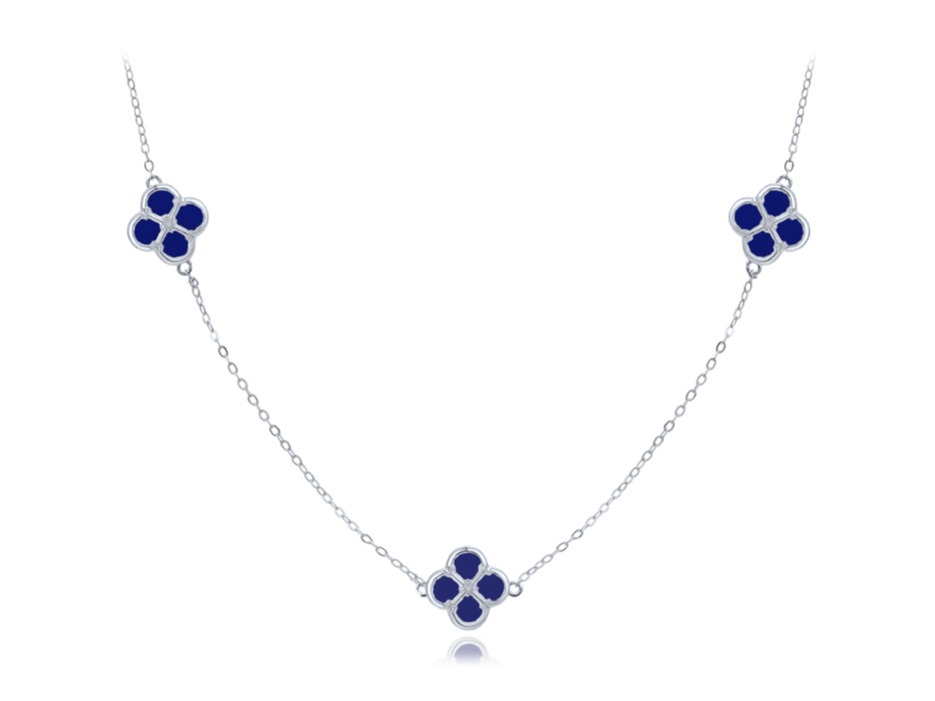 MINET Stříbrný náhrdelník čtyřlístky s lapisy