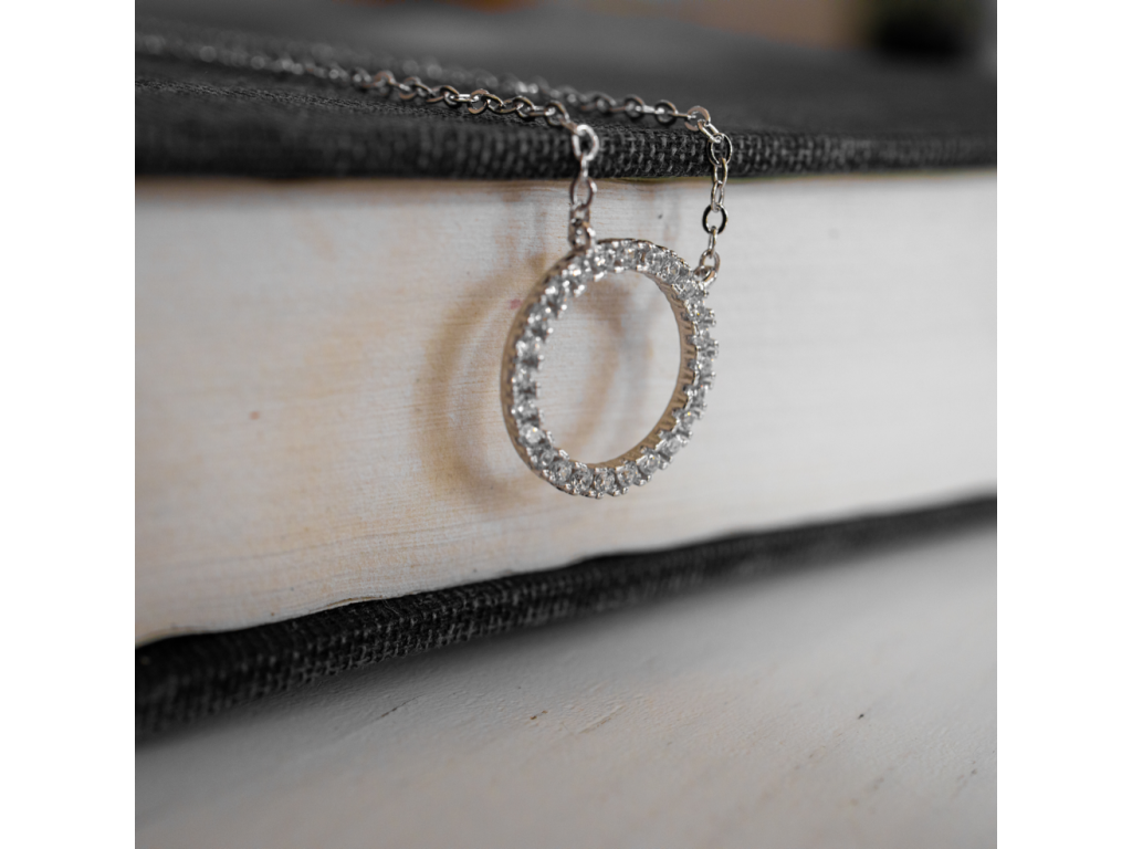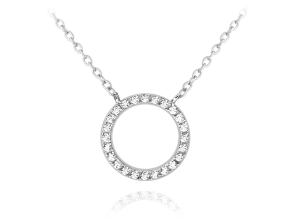 MINET Stříbrný náhrdelník KROUŽEK s bílými zirkony