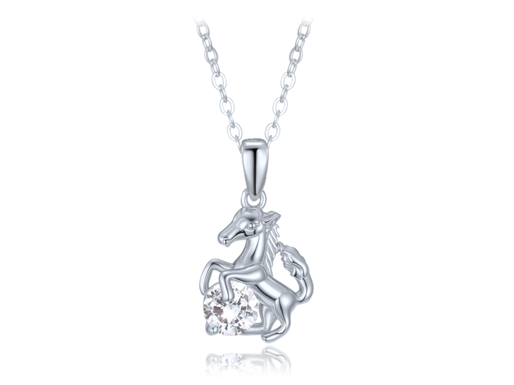 MINET Stříbrný náhrdelník kůň s bílým zirkonem