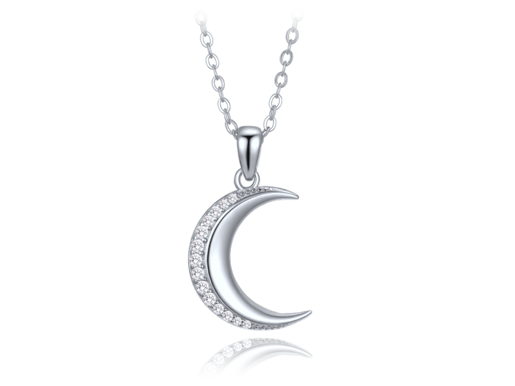 MINET Stříbrný náhrdelník měsíc s bílými zirkony
