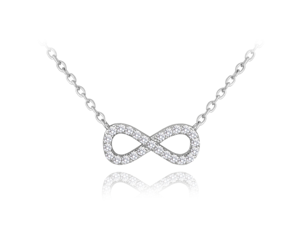 MINET Stříbrný náhrdelník NEKONEČNO s bílými zirkony