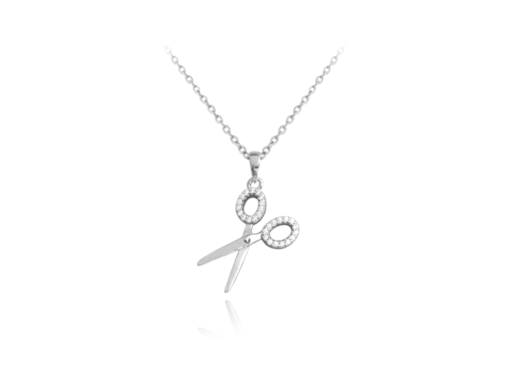 MINET Stříbrný náhrdelník NŮŽKY s bílými zirkony