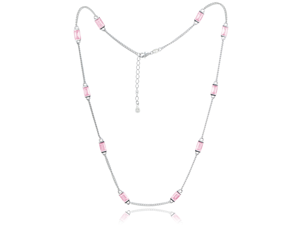 MINET Stříbrný náhrdelník s růžovými zirkony Ag 925/1000 10,75g