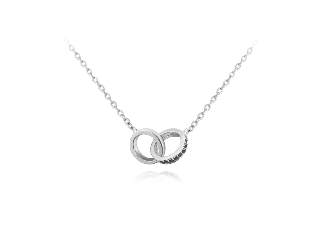 MINET Stříbrný náhrdelník spojené kroužky s černými zirkony